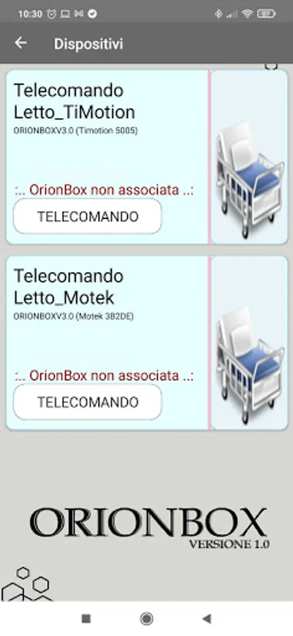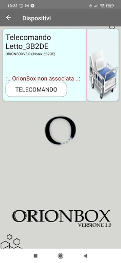 It allows you to manage the electric beds compatible with the OrionBox control unit, for details on compatibility visit the website. In addition to normal movements, it allows you to perform complex and customizable sequences, such as passive gymnastics, positioning in the chair, the transfer position towards the wheelchair. It also features a high contrast mode. All via smartphone and without the use of the internet. It is possible to set the desired language among those available. For details, refer to the website www.oriongroupsrl.it.