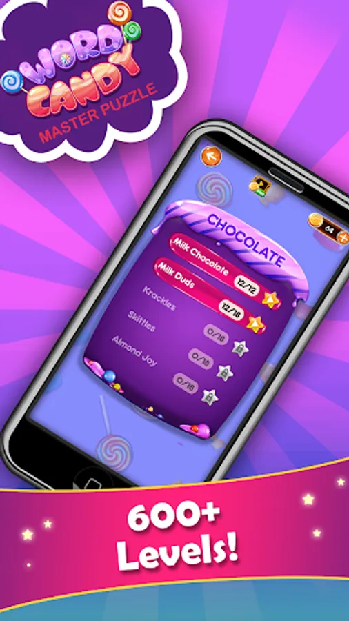 Play over 500+ levels for free, with mouth-watering candy, we can guarantee you in this Word Candy- Master Puzzle no two levels are same.