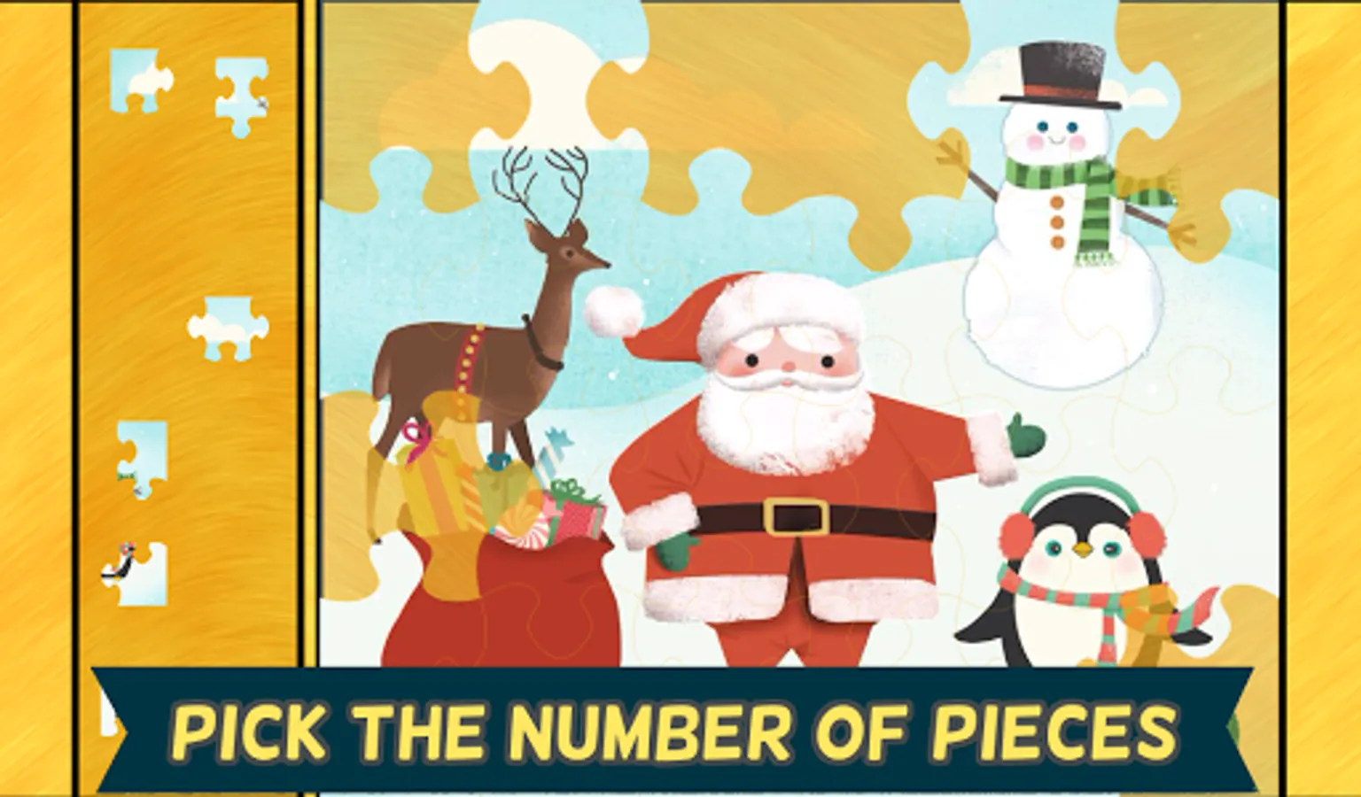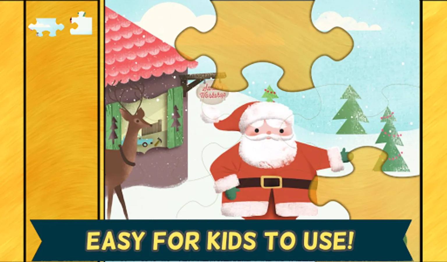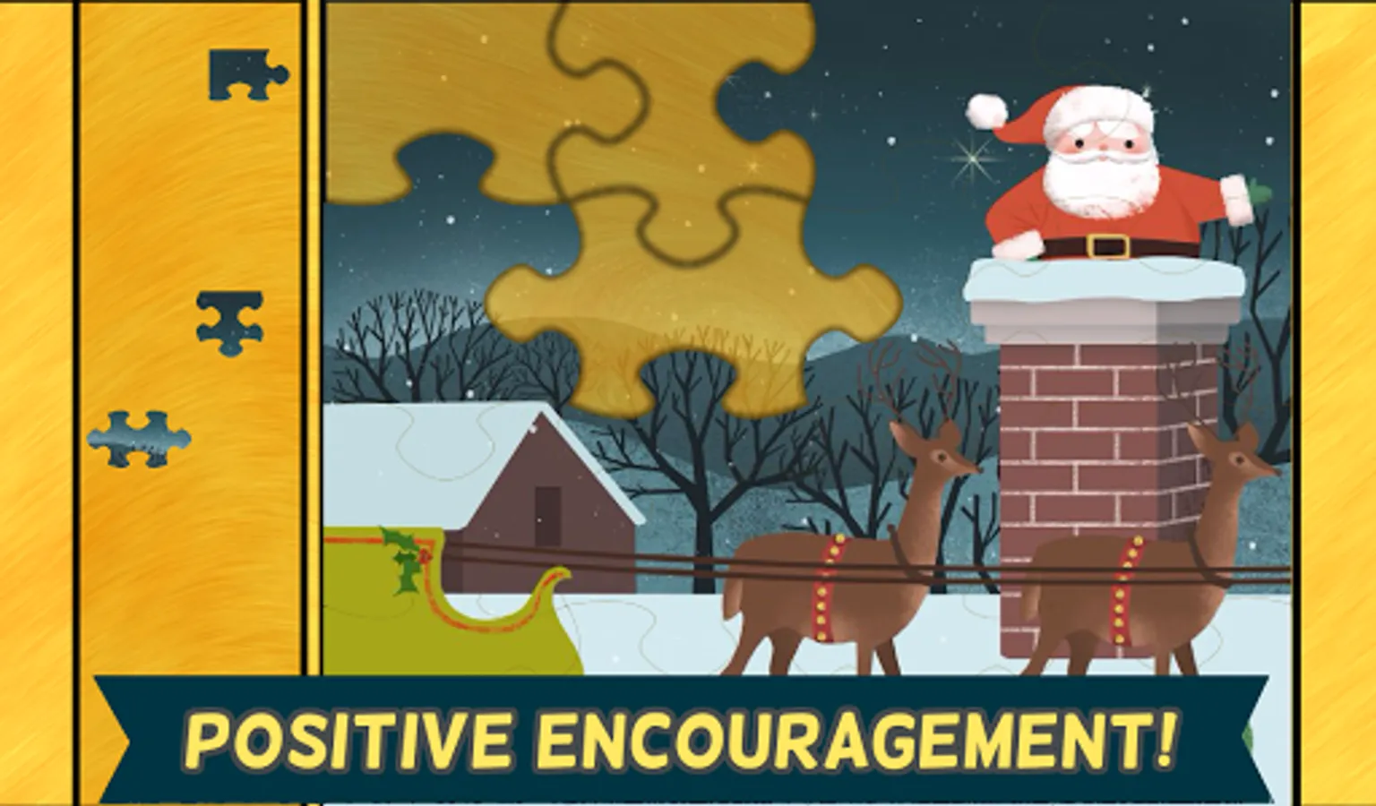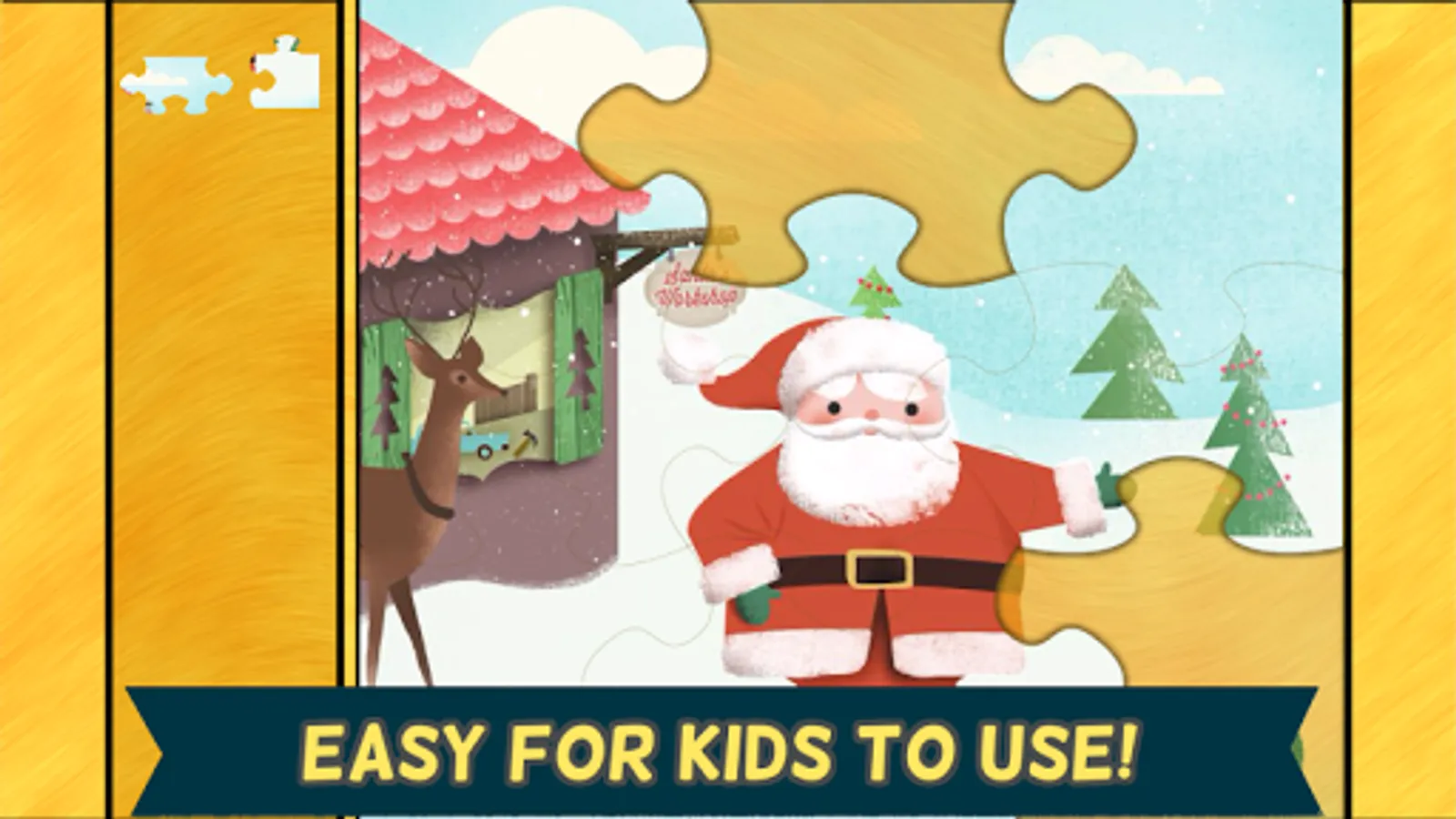 Santa Claus, Snowman, and Reindeer Jigsaw Puzzles for Toddlers, Boys, and Girls HD features virtual jigsaw pieces for learning shape recognition and matching- great for educational purposes or just for fun! Good for one of your child's first puzzle games- it's easy for beginners to connect with and get lost in this magical children's fantasy world.