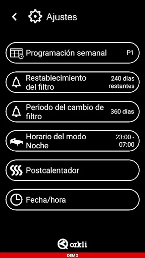 • Settings menú