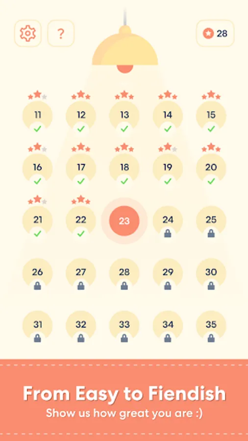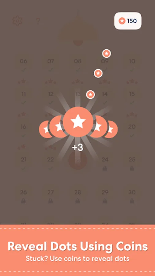 The game starts with 3-dots combination and ends with 6-dots combination. The game is dead easy at first then it gets challenging as you finish more levels. Each level is unique - a new playing area awaits you!