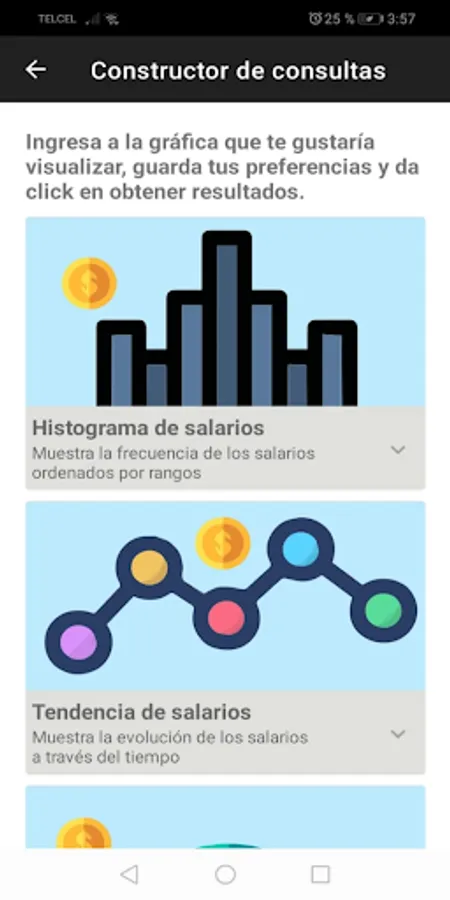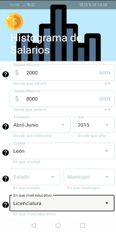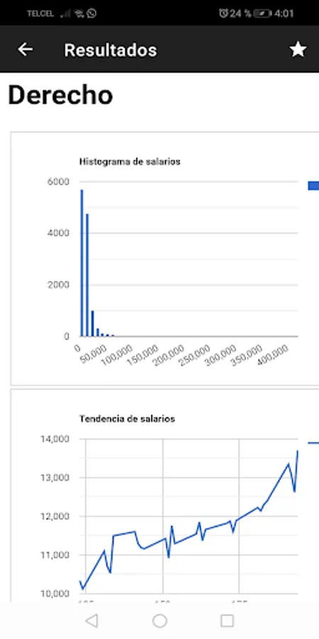 Each of these graphs is fully customizable through the following variables: salary range, period, location (city, state or municipality), educational level (bachelor's, master's or doctorate), age range and gender (male or female) .