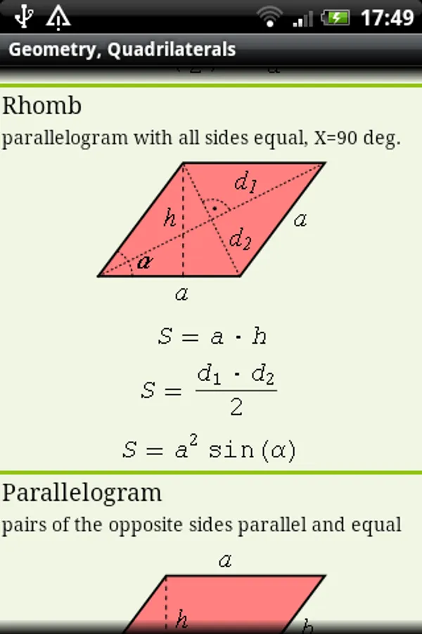 Now you have all useful math formulas and definitions handy and can always refer to them. There are a lot of drawings (including 3D), explaining all symbols used in formulas.