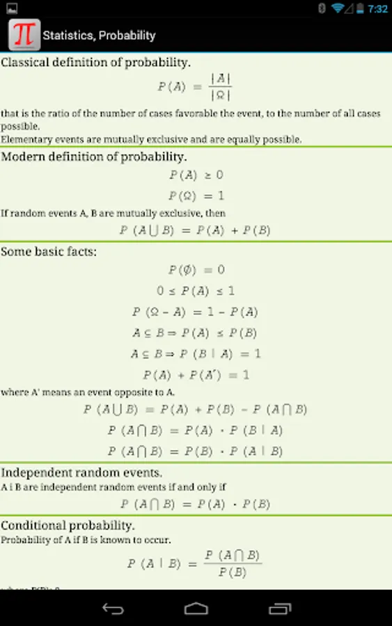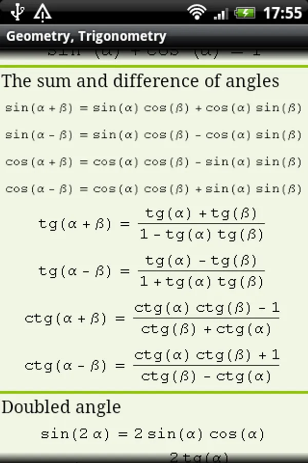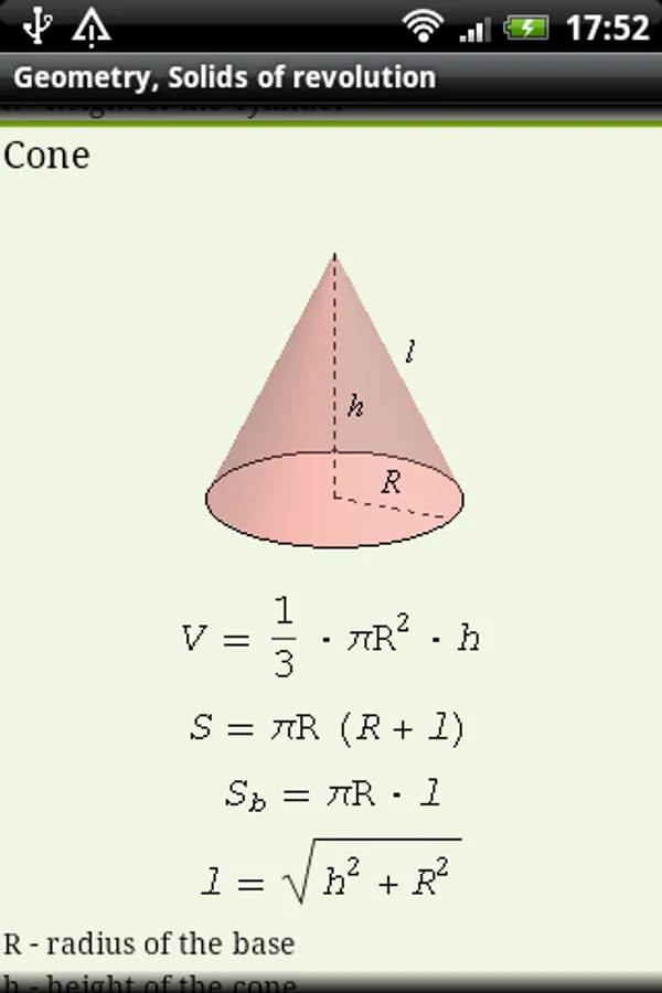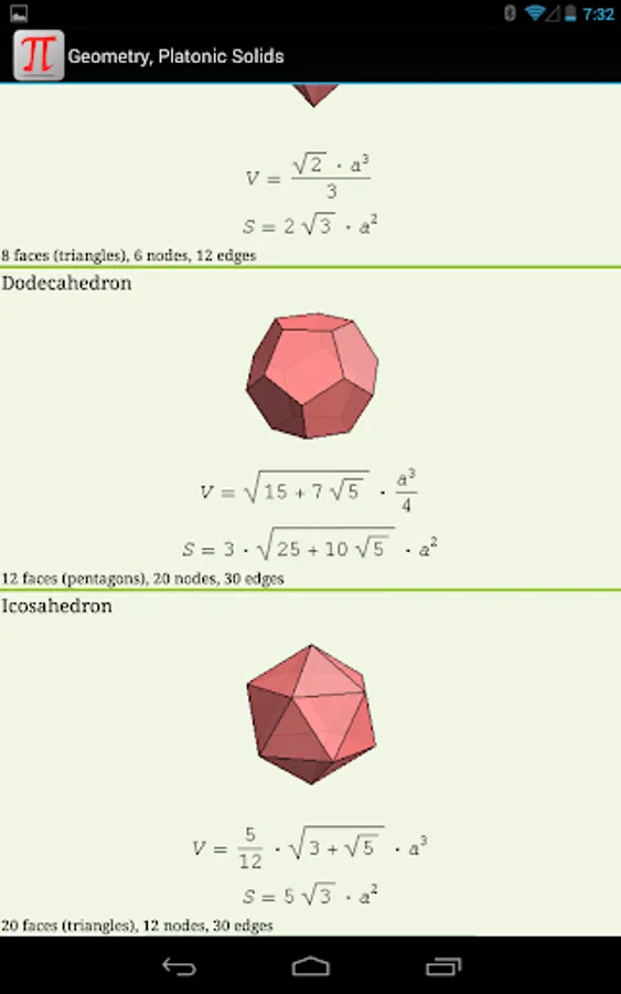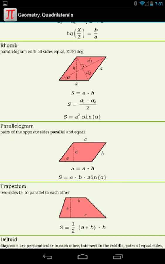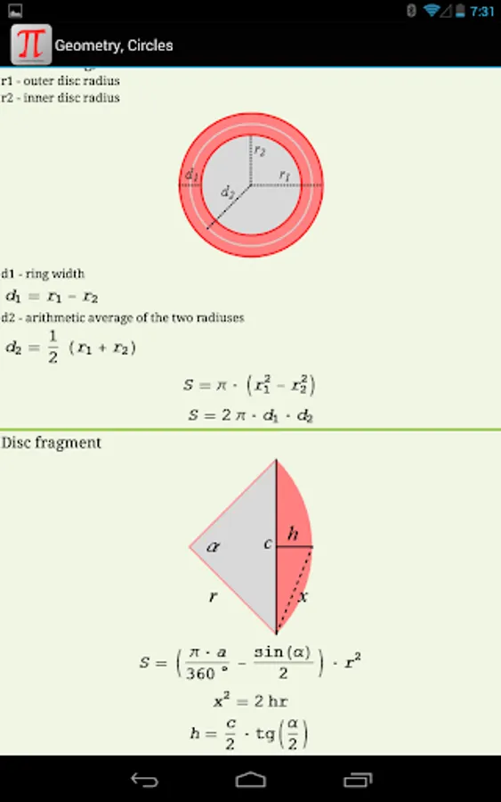 Now you have all useful math formulas and definitions handy and can always refer to them. There are a lot of drawings (including 3D), explaining all symbols used in formulas.