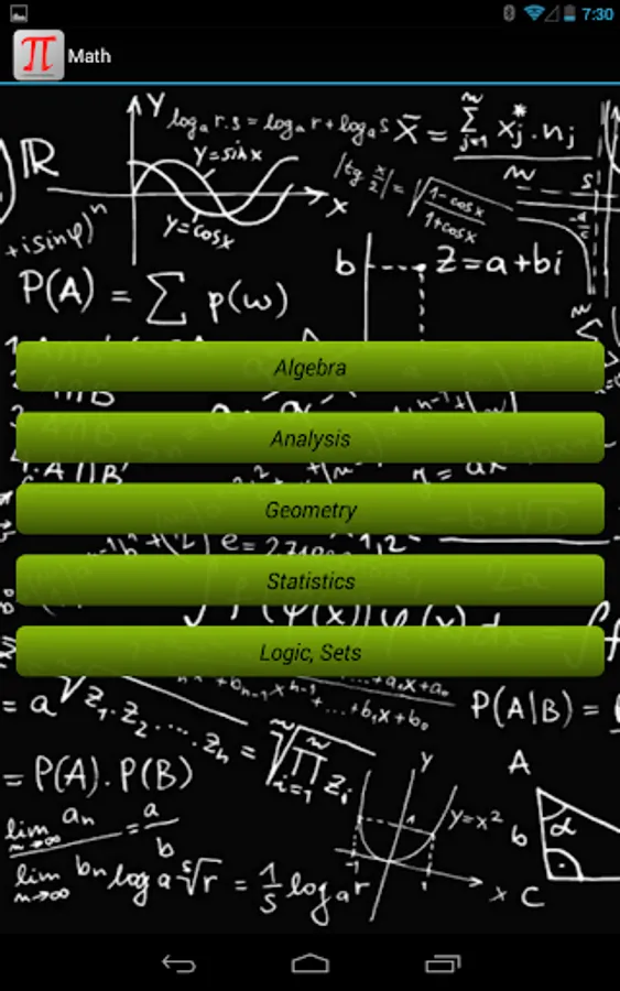 There is also a paid version of the Math (MathPro), which does not show ads, and includes material from both Math and Math2 apps.