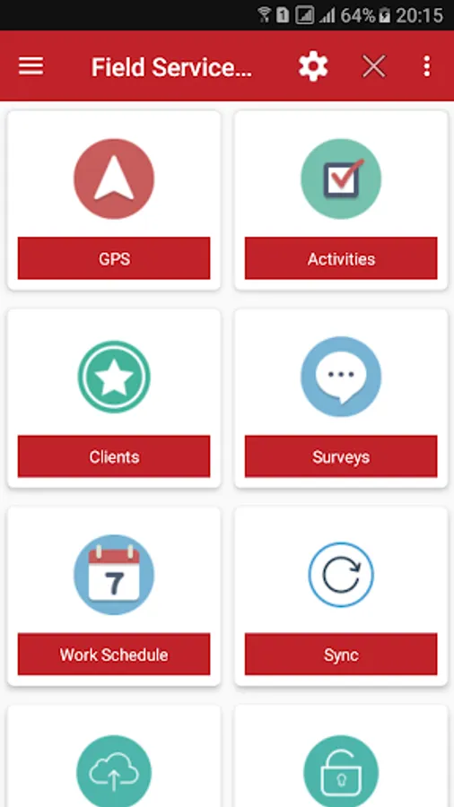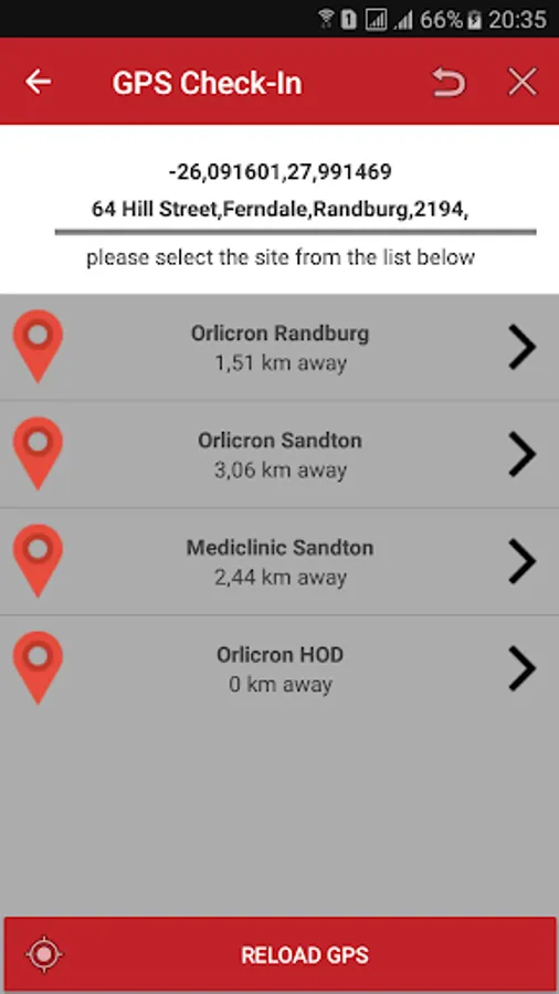 Field service application to help with client management and task completion. The Check-In functionality uses GPS to detect the available sites in the preximity