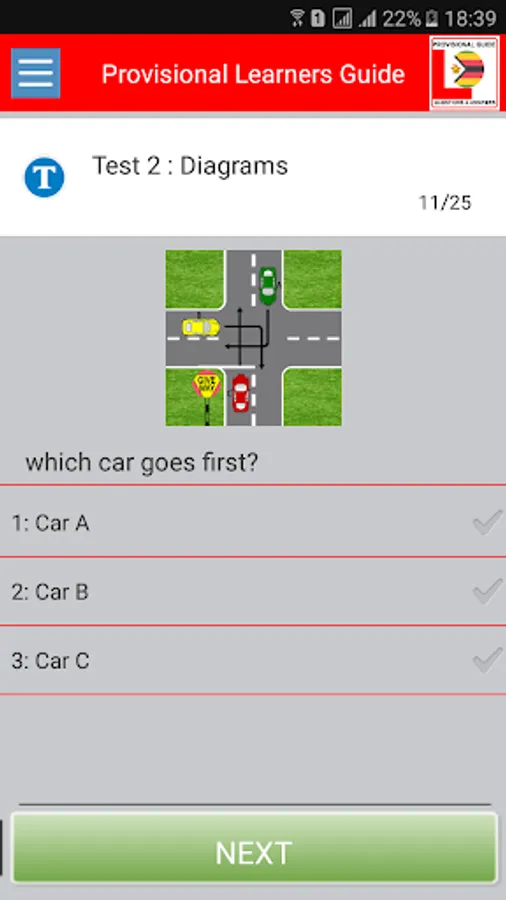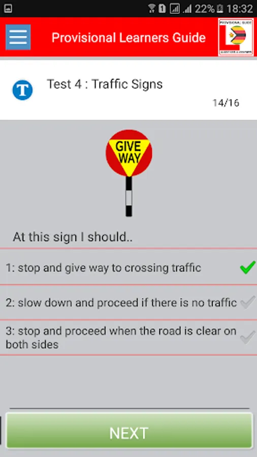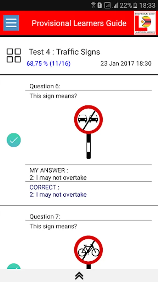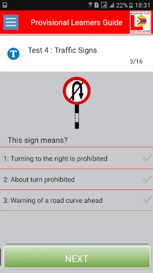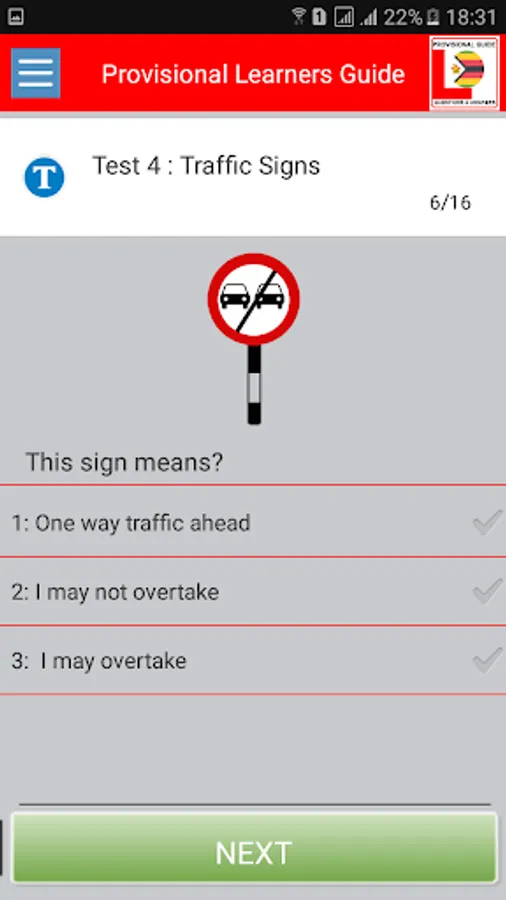 The app also allows you to review your answers and see whether you are prepared for the Provisional Learners Test or whether you need to revise some more! You can practice as many times as you can.