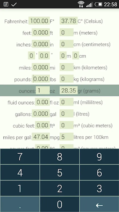 There is a very simple reason why this the best Metric/American Imperial unit converter: I made it for my own personal use and included all the tiny conveniences I could think of, favoring simplicity and ease of use above all else. There isn't even a "Convert" button - the result is shown as you type!