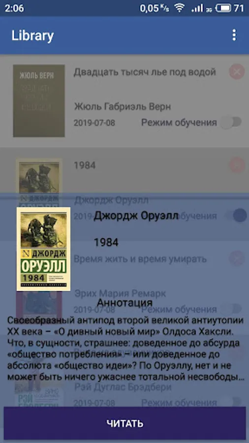 Reading books in fb2 format with the function of teaching English using the unique BookRead algorithm.