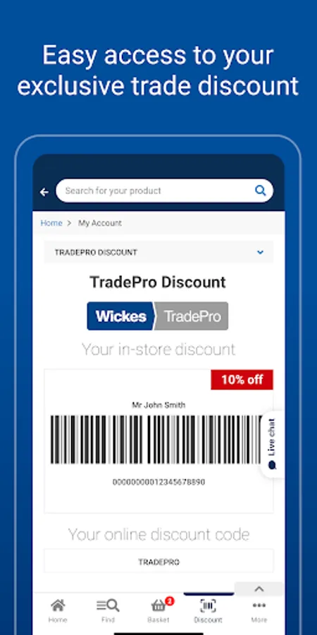 • Easily access your exclusive TradePro in-store barcode and online discount code to save money on every shop