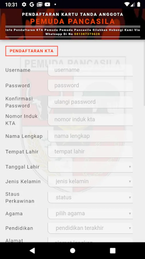 Place for KTA Pemuda Pancasila Member Card Registration to facilitate online registration during this pandemic period.