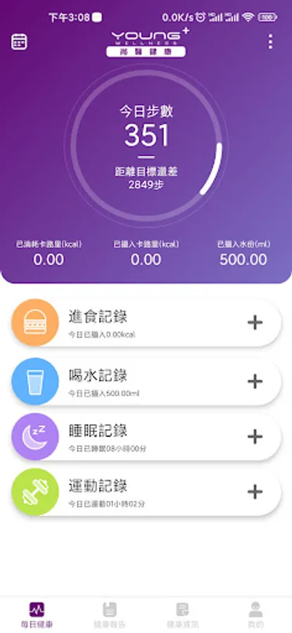 - Daily health records, including drinking water, sleep, exercise, and defecation records
