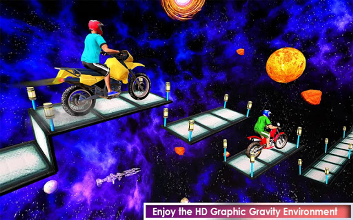 Unloack your new stages and improve your skills if you love driving classic trafficbike spooky stunt race download this crazy drive real bike racing tricks highly sky stunts.simulation games and start your greate stunt .
