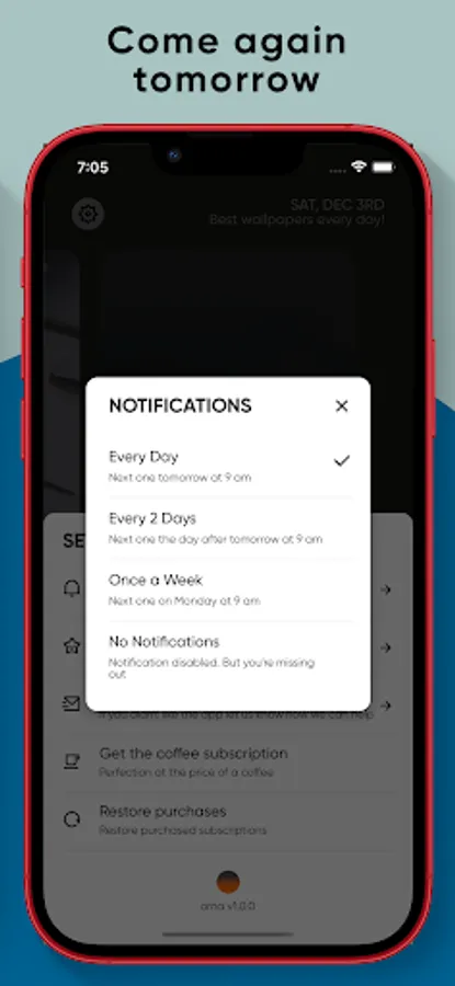 Every day the app selects 3 awesome wallpapers that you can choose to use.
