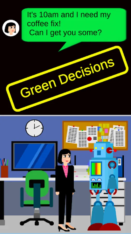 Join Lenny and her robot friend in their journey to save the planet! Play this game and learn in a fun way how to cope with the huge issues in our everyday life. By solving the quizzes, you will get the best way to travel, eat, drink and work in order to help the environment and save our planet Earth.