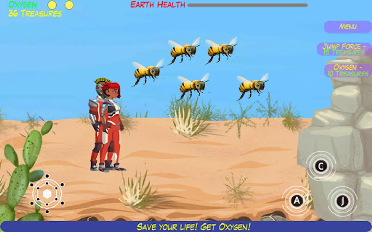 This is the era of Climate Change! Earth and atmosphere are changing and your mission is to save them. You will have to survive the decaying environment, avoid (or attack) the enemies who destroy the planet and solve Climate themed quizzes.