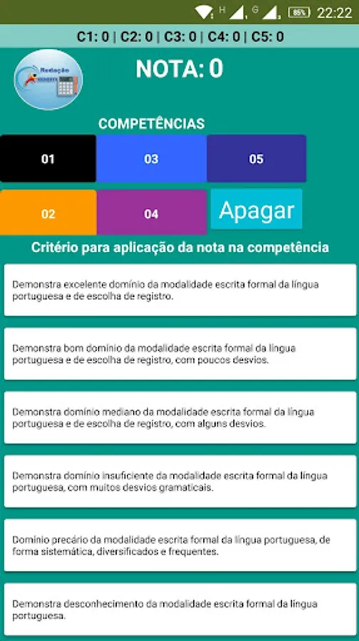 With the use of the "ENEM Writing Calculator", you will have more agility in the correction of the essay, besides consulting quickly and effectively the criteria for applying each score according to the competency analyzed.