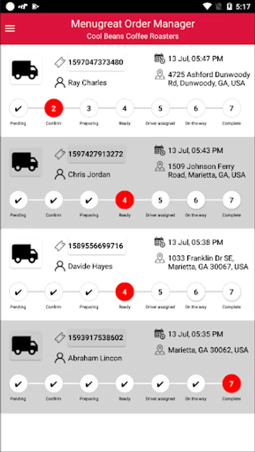 - Shows list of orders by their status