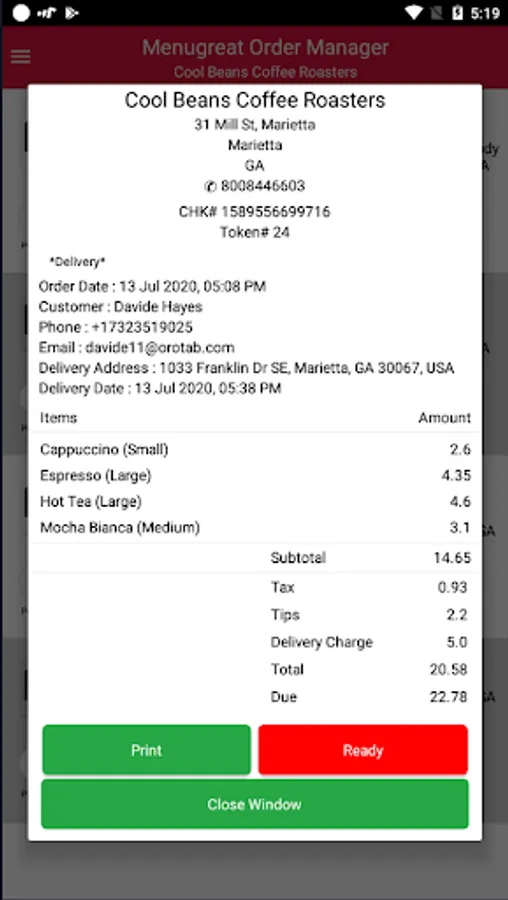 MoMan lets a store manage customers' orders from Menugreat.com. It has the following key features.
