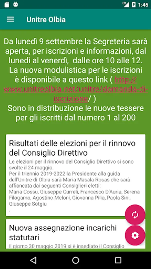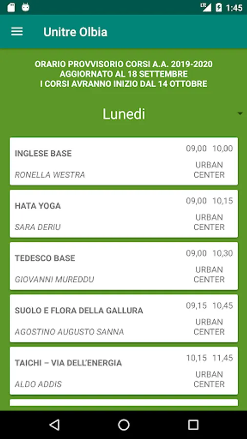 With this application you will have all the information of the unit of olbia in the palm of your hand. With pages dedicated to news, class schedule, library and secretariat. Plus you can set notifications for new news or set the alarm for the lessons you want to follow.