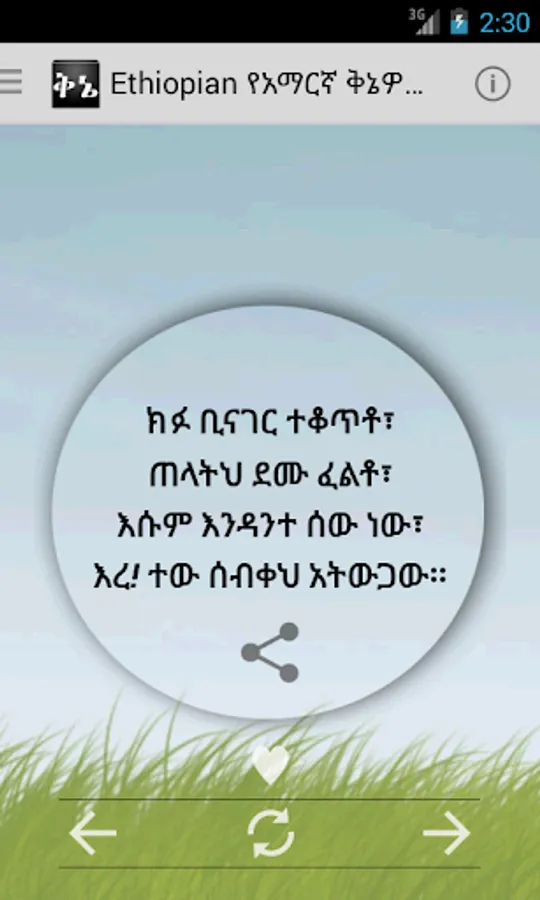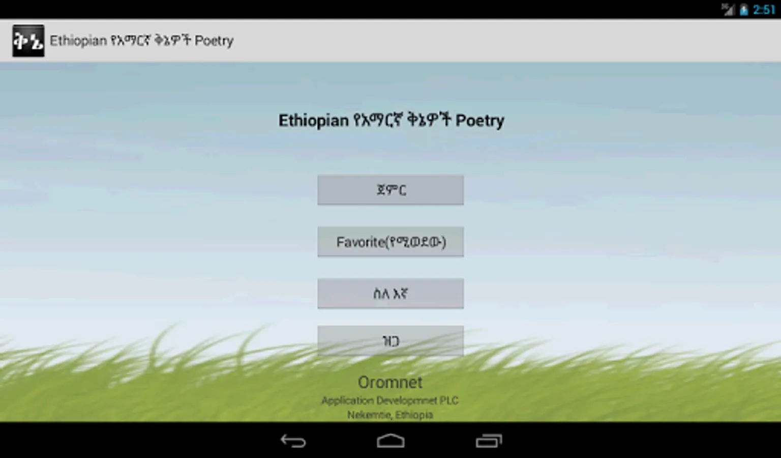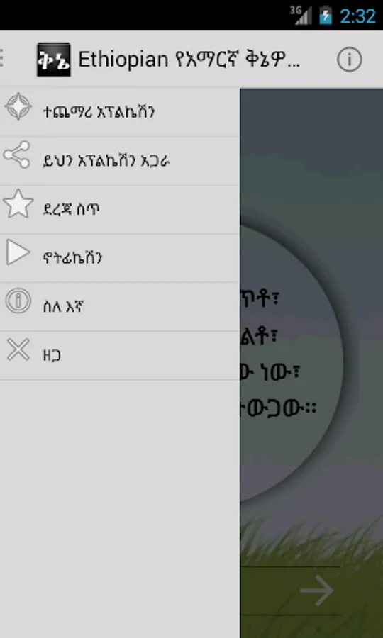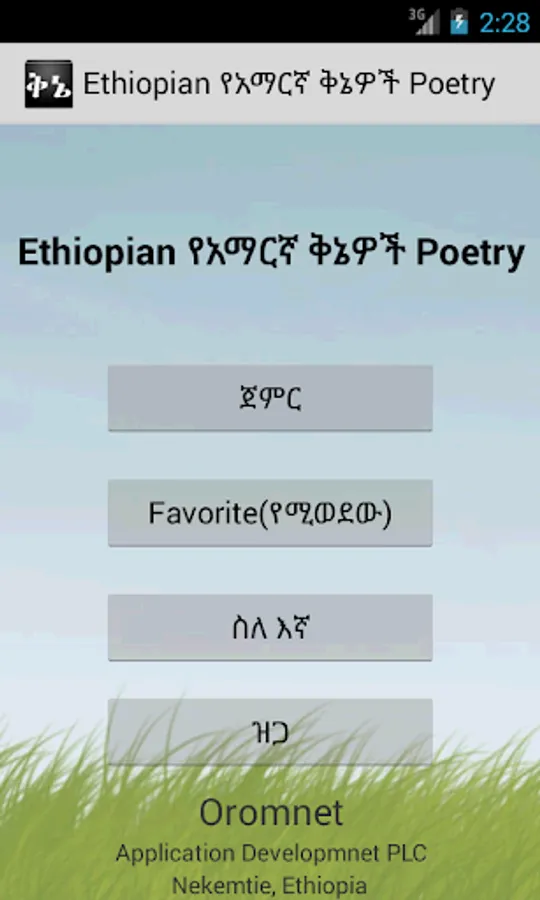 Qine (in both Ge'eze and Amharic language) as a poetry is used to express religious/spiritual (predominantly Orthodox Christianity) and social issues. This app contains Qine poems that orbits around Social issues mainly love daily life struggle administrative issues (not-contemporary) and the likes.