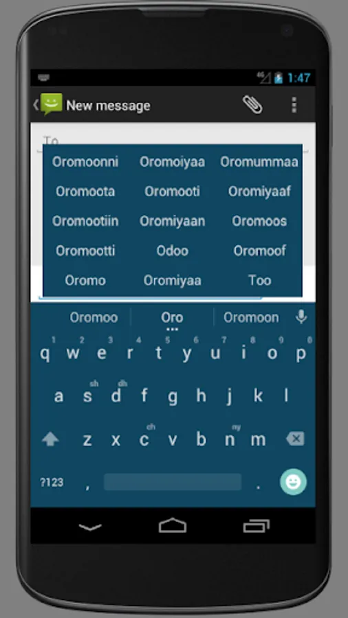 Afaan Oromoo Keyboard app has more than 45 000 Afaan Oromoo words. The app suggests these words while you are typing. It also automatically saves new words that you write.