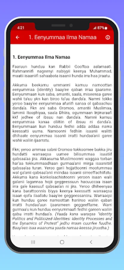 Dhimmi Oromoofi Muslimoota ilaallatu Itoophiyaa keessatti dirree qabsoo qorattootaafi gulaaltotaa baay’ee barbaaduudha. Sababni isaas dirreen kun lamaan qaama isaan qoratee dharaafi dhugaa, cubbuufi haqa adda baasu, kan qaawwa barreessitoonni wallaalumaanis ta’ee beekaa irra utaaluudhaan uuman duuchuufi dhugaa isaan jallisan qajeelchu gaafata. kanarraa ka'uun mosaajii Oromummaafi Islaamummaa jedhu kana keessatti dhimmoota garaa garaa bal'inaan kan ilaallu taha.