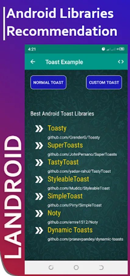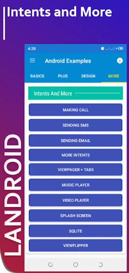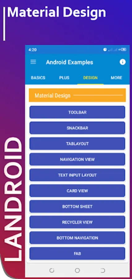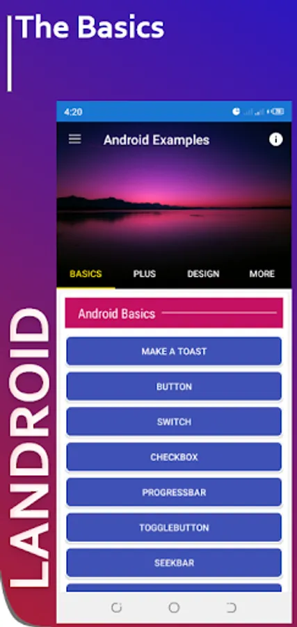 This App contains 100+ Android examples. it's mainly designed for beginners to start learning android app development with examples. You can copy the source code of any example from this app. all examples of this app are tried and tested in Android Studio.