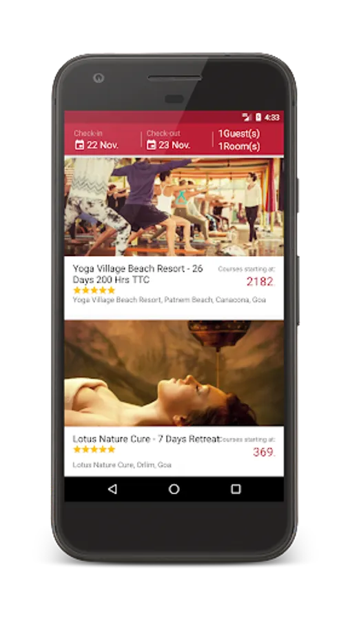 Auro Yoga and Retreat booking app helps you look up consolidated information on various therapeutic retreats and healing centres across India, who provide with wellness workshops, learning activities and weekend getaways.