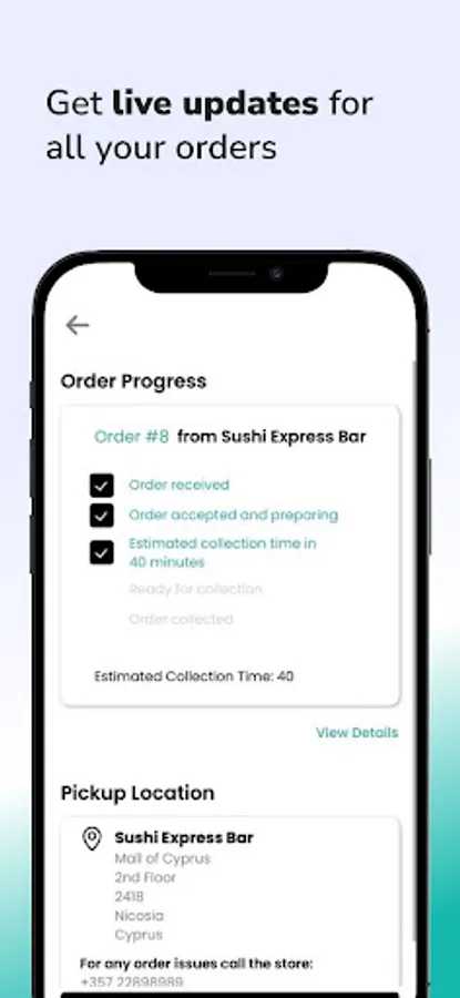 If you are sitting at the venue a waiter will serve your order at the table number you entered during ordering. If your order is for pickup, the app will notify you on the estimated collection time and when your order is ready to collect.