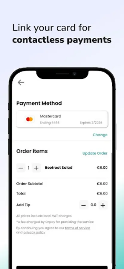 Download the Orpay app to Order & Pay at restaurants, hotels, cafes, bars, pubs, cinemas, food markets. Use it for table service, pick-up from the bar or for take-away!