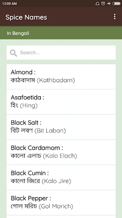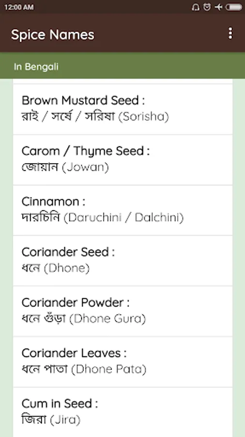 Spice name bengali to english