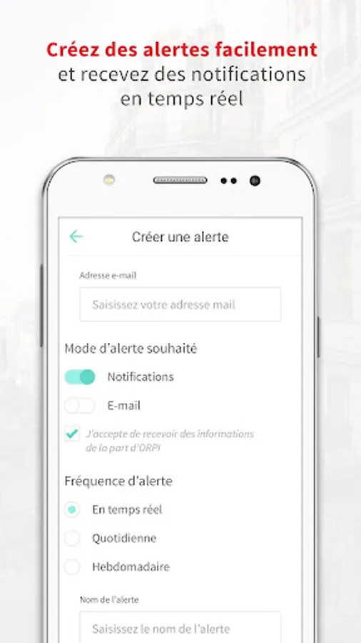 You can create real alerts and receive push notifications or email in real time or frequency that you want. A real asset to not pass on your dream, a real estate market dynamic.