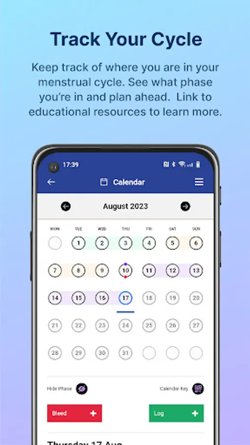 • Track your period and log menstrual cycle-related symptoms on a daily basis.