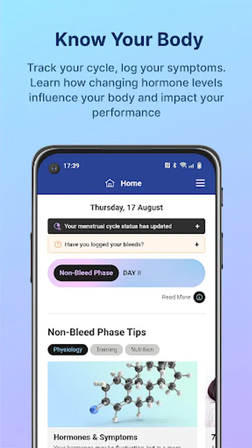 • Receive personalized content based on your cycle status and logging activity, providing what you need to know, when you need to know it to maximize your training and recovery.