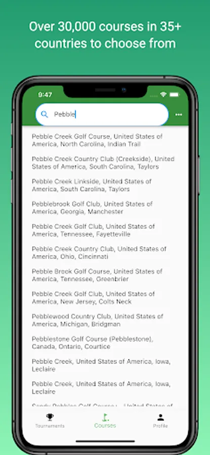 Your course is sure to be on the list. And if it's not, it's simple to add a new one. You can also edit your course in the app if the holes change.