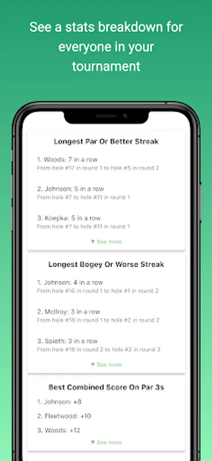 See who has the best par streak, lowest combined score on par 3s, biggest blowup hole and many more