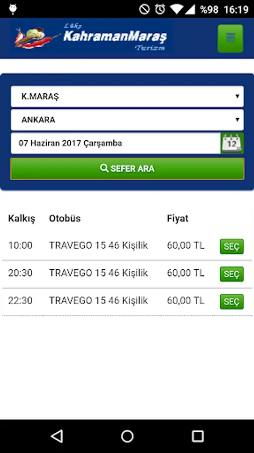 Uygulama üzerinden; seferleri görebilir, bilet alım işlemlerinizi yapabilirsiniz.
