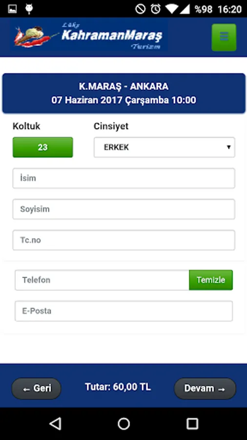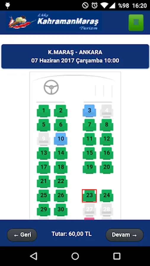 - İstediğiniz saatteki seferi seçebilirsiniz.