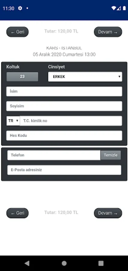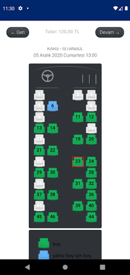 - İstediğiniz saatteki seferi seçebilirsiniz.