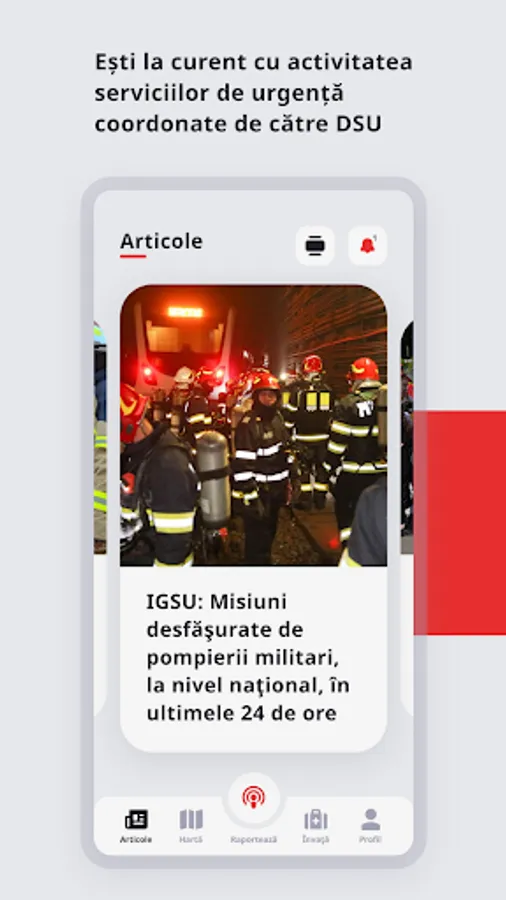 The application contains daily news about the activity of all emergency services coordinated by the DSU, real-time updates on the occurrence of emergency situations found at the national level and other important events, as well as emergency alerts for each user's specific location. In addition, it includes articles on how to stay safe in various emergency situations, such as accidents or other life-threatening situations, natural disasters, etc. Also, the reporting feature allows any user to send vital information about an emergency they witness.
