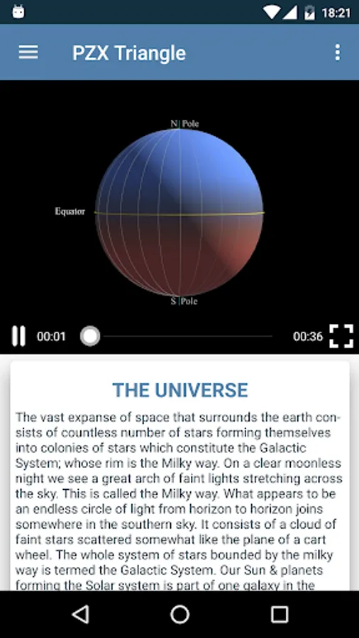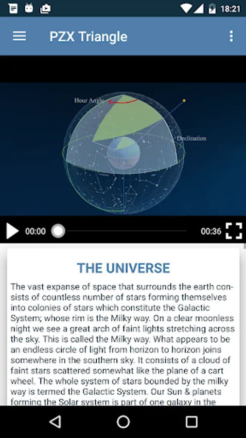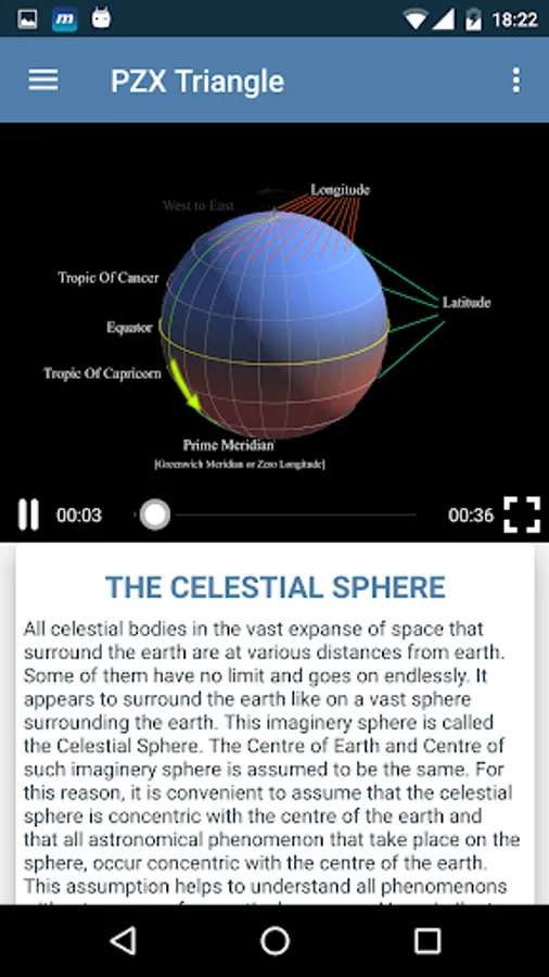 This is a first of its kind Mob App on Principles of Navigation. It covers 15 hours of classroom explanation by way of 34 sec movie and explanation. There two chapters a) The Universe, b) The Celestial Sphere with several subtopics associated with a movie.