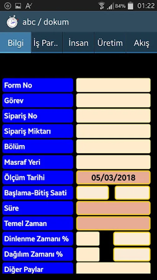 Time measurement program of the workflow that occurs during the execution of a task; the recording of the flow zone definition is made, measuring and recording the time, the recording of observed performance value of employees in the affected streams, the number of observations of the motion of making statistical evaluations and allows for the calculation basis of time evaluating all of these data.