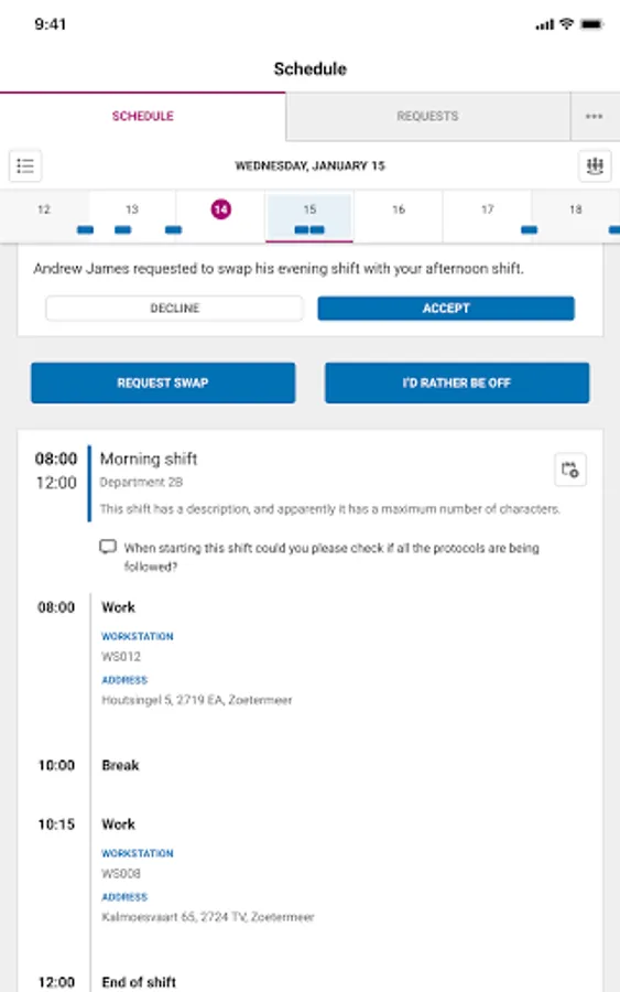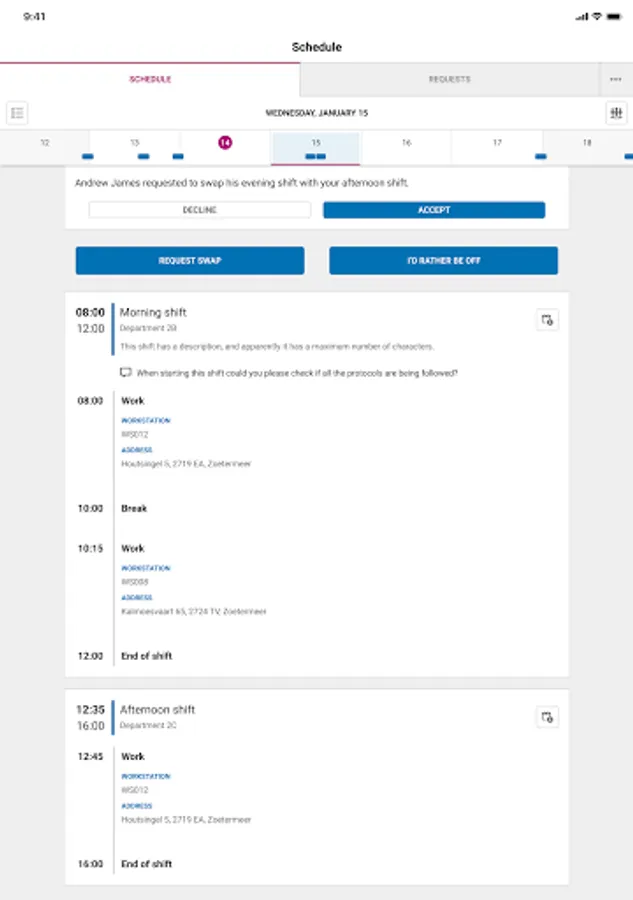 ORTEC Employee Self Service App: organize everything around your schedule using the ORTEC ESS 7 app. Exchange a shift, request leave or run an extra shift? Arrange it easily and quickly yourself in this app. Always at hand and easy to use. Within a few seconds you can arrange everything about your schedule yourself.