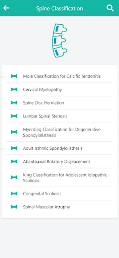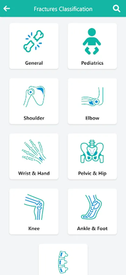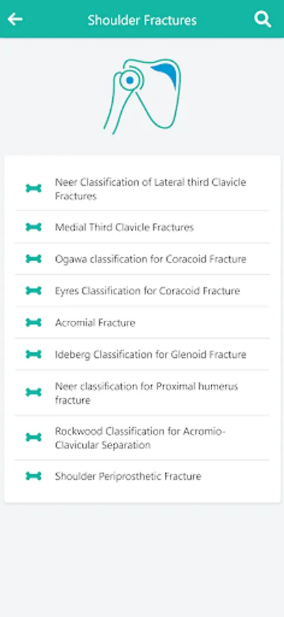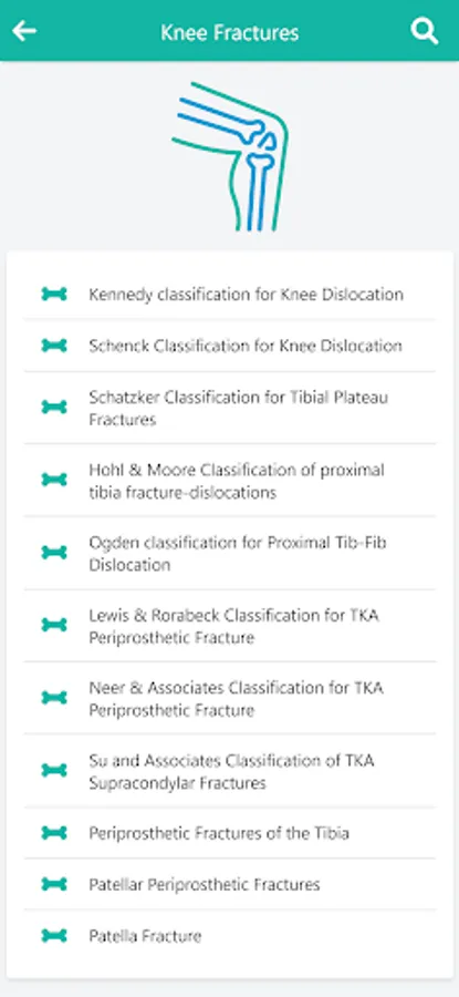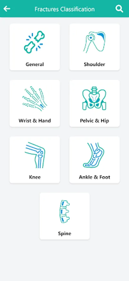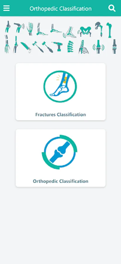 Orthopedic classification app contains all classification systems of bone fractures such as the classification of humeral head fractures (Neer classification) and the classification of orthopedic diseases such as the classification of femoral head osteonecrosis (Vicat classification).