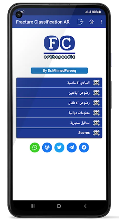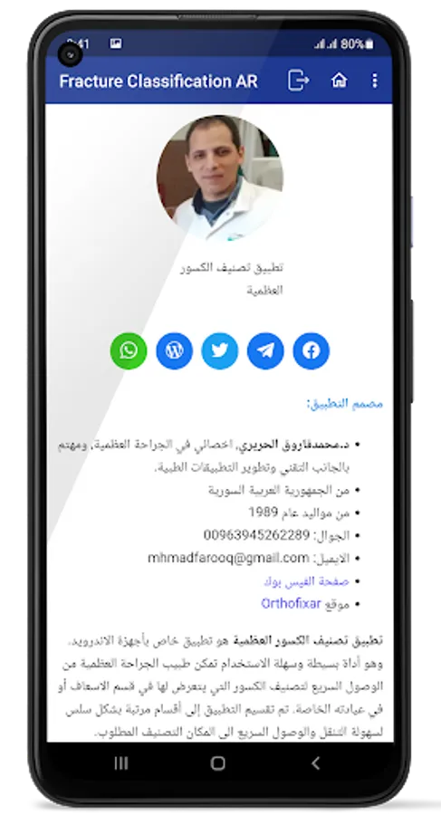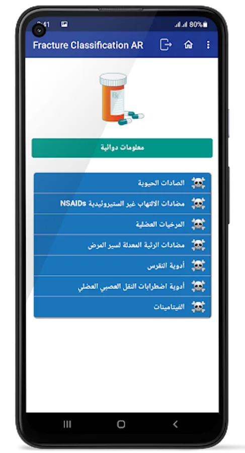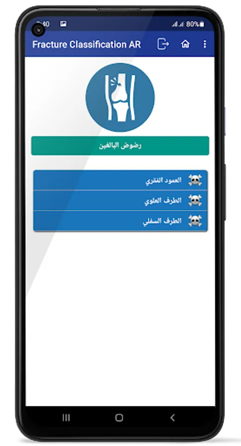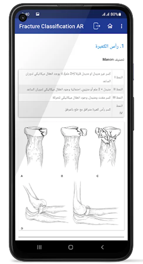 The application of classification of fractures in orthopedic surgery, is an application that contains classifications of bone fractures in orthopedic surgery in the Arabic language, presented in a simplified and easy way.