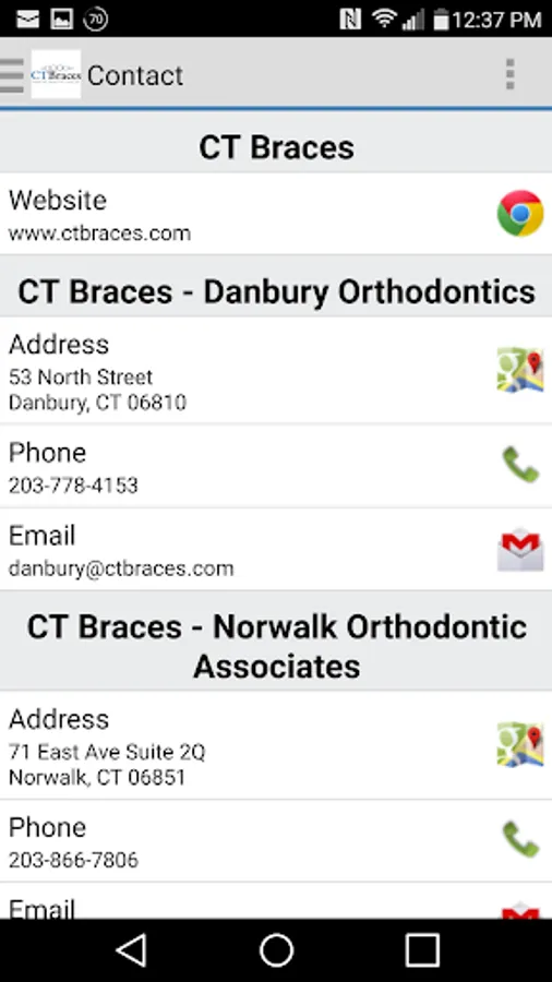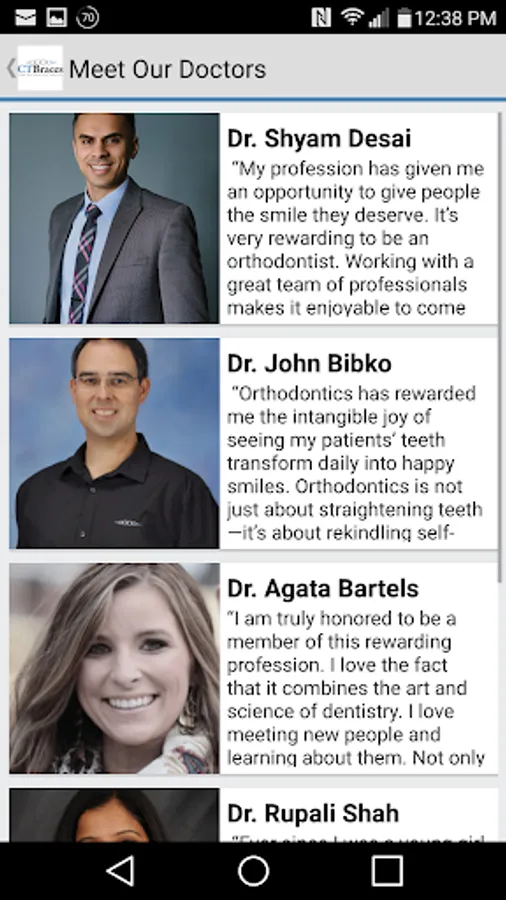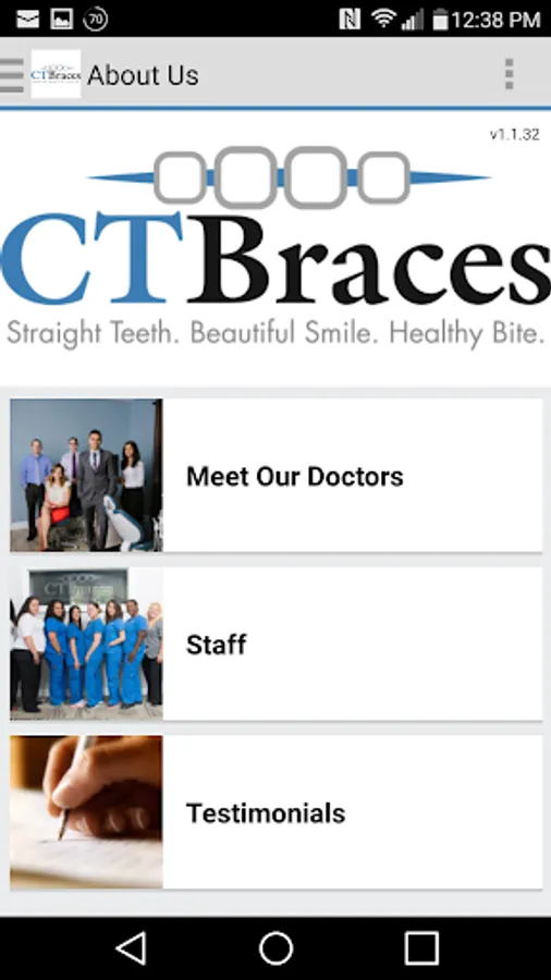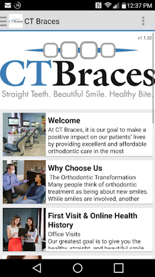 The CT Braces app provides everything you need to learn about or interact with CT Braces. New to our practice? You can tour our offices, meet our doctors and staff, read about our services, and even request a consultation. As a patient or responsible party, you can view or schedule reminders for your appointments, make payments, see your images, animations, view and select your rewards, and more.
