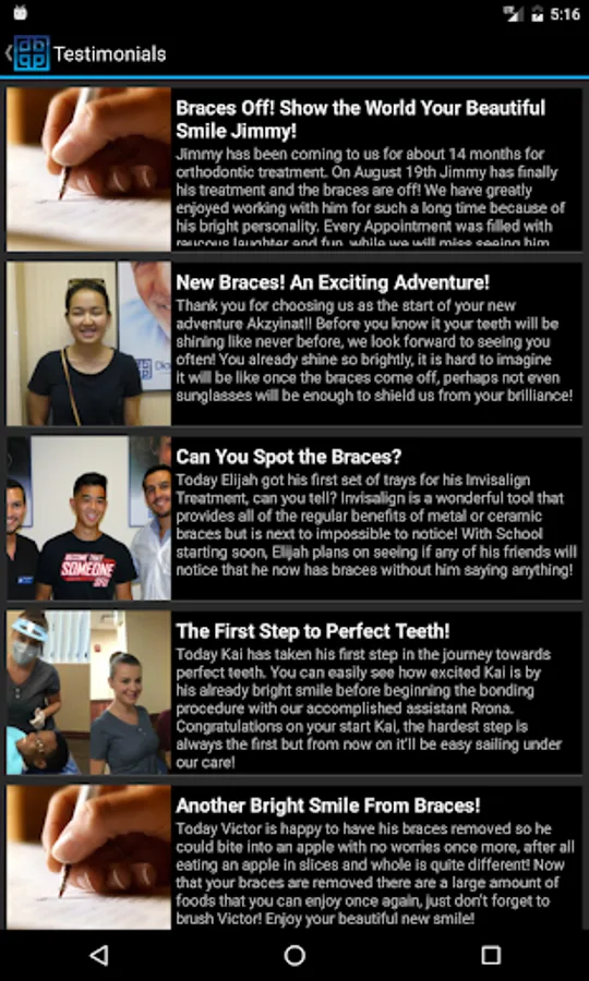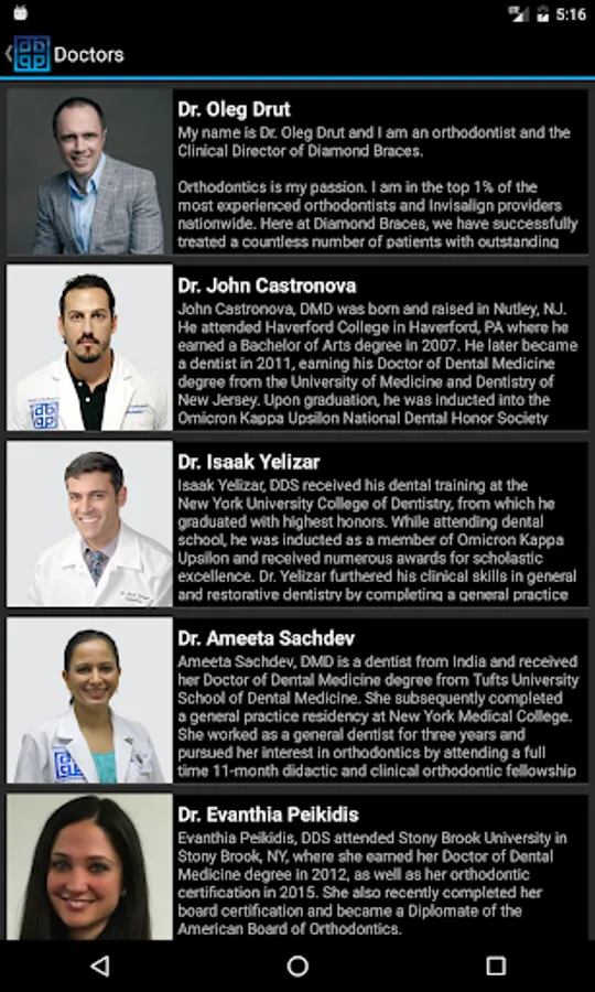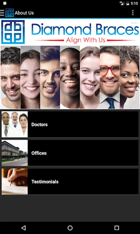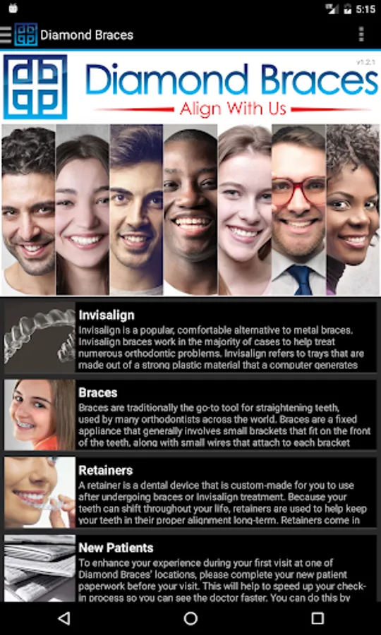 Diamond Braces app provides everything you need to learn about or interact with Diamond Braces. New to our practice? You can tour our offices, read about our services, and even request a consultation. As a patient or responsible party, you can view or schedule reminders for your appointments, make payments, see animations and more.