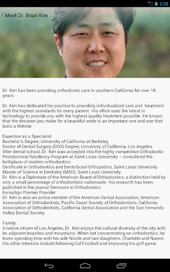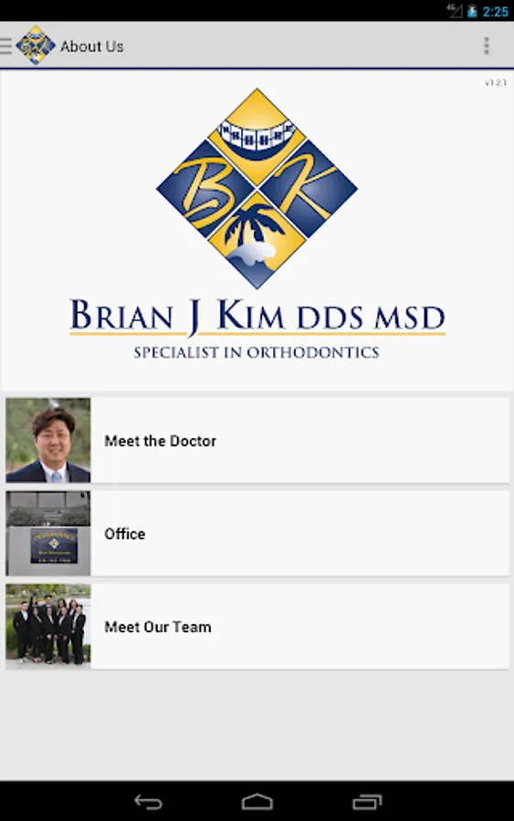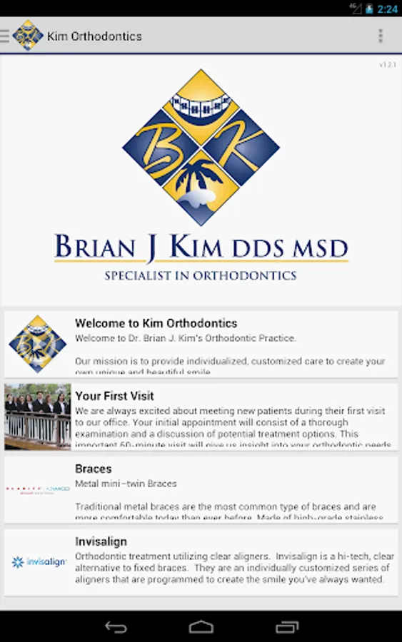 The Kim Orthodontics App provides everything you need to interact with our practice. New to our practice? You can tour our office, meet the doctor and staff, read about our services, and even request a new patient complimentary consultation. As a patient or responsible party, you can view or schedule reminders for your appointments, check in for your appointment remotely, make payments, see your images, animations, and more. Welcome to the office of Dr. Brian J. Kim!