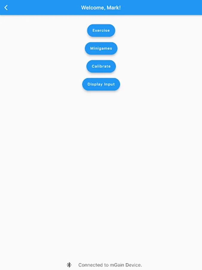 To play the mGain Exercise Games, the mGain mobile application (App) requires pairing with the mGain game controller. The mGain System provides visibility of muscle strength, even for very weak muscles that might not have movement visible to the naked eye, through biofeedback with a surface electromyography (mGain) sensor. Suitable for play at home, mGain includes muscle strength training and responsiveness exercises. Training includes the ability to change game settings for increased difficulty. As players master the exercise games, more advanced game levels are unlocked. The variety of training games allow exercise for as short as a few seconds at a time up to 30+ minutes of game play. Game history and statistics are saved for ease of tracking your muscle strength, and score reports can be exported from the App.